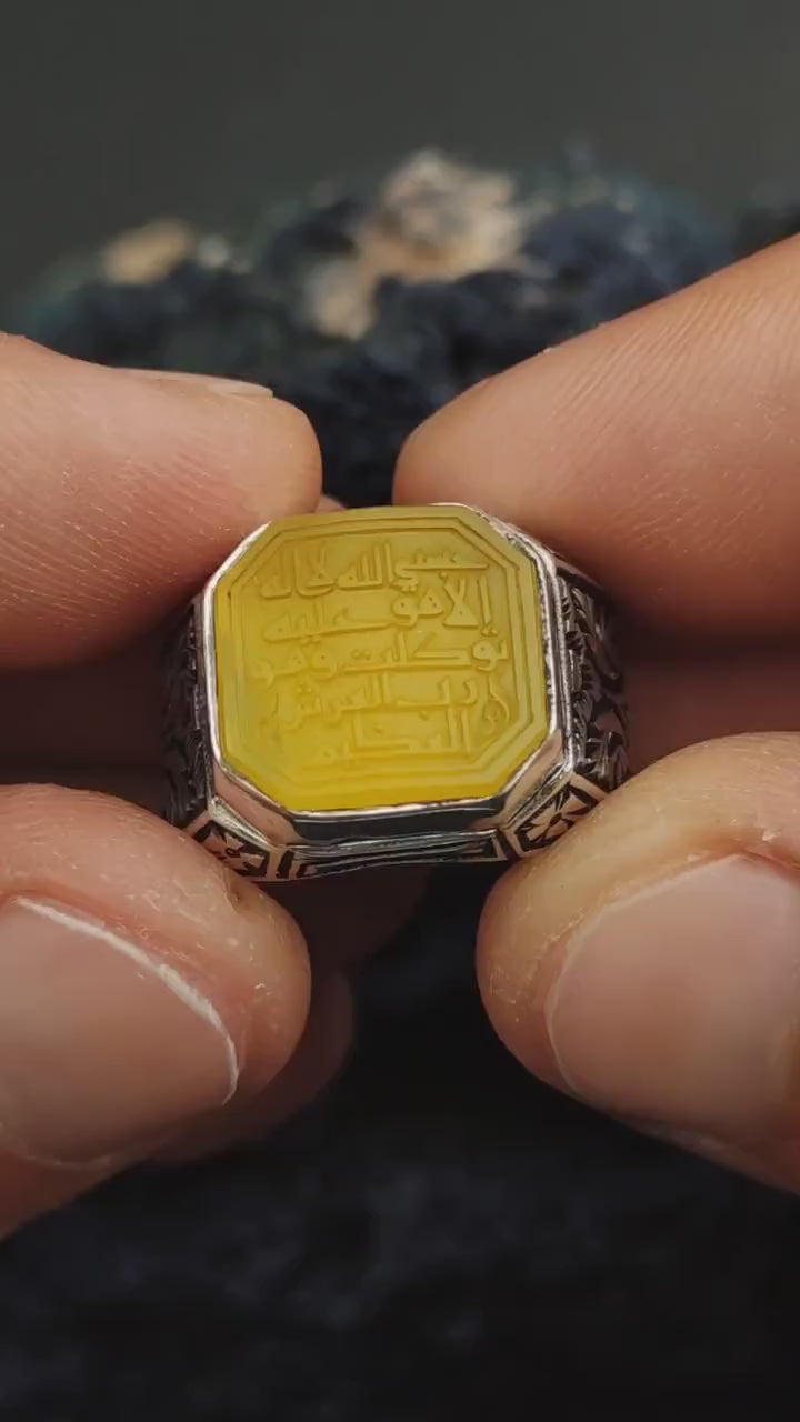 The writing and meaning on the stone: ( "حسبي الله لا اله الا هو عليه توكلت وهو رب العرش العظيم")