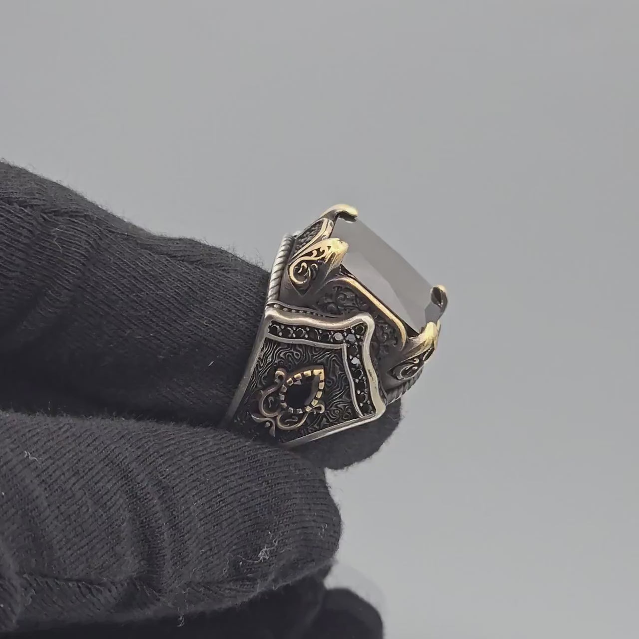 Handmade 925k silver men ring. Make your father, boyfriend, brother and grandfather happy with silver ring designs that reflect medieval and Ottoman era style. Make them feel valuable with such silver rings made of pure silver for birth days and special occasions. Attract attention of people around you with precious stones on silver.